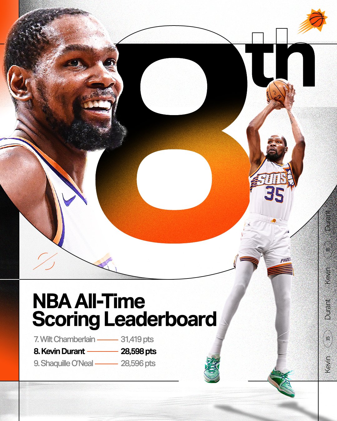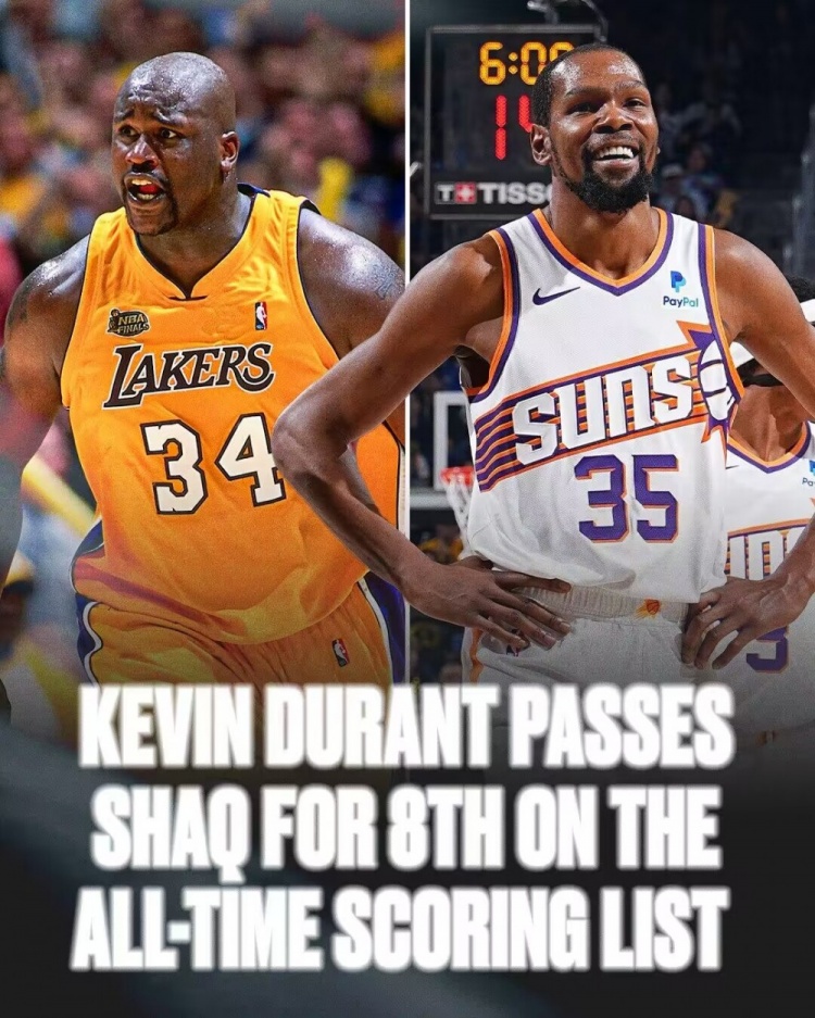 3月21日訊 此前,杜蘭特的常規賽生涯總得分超越奧尼爾,上升至NBA歷史得分榜第八位。