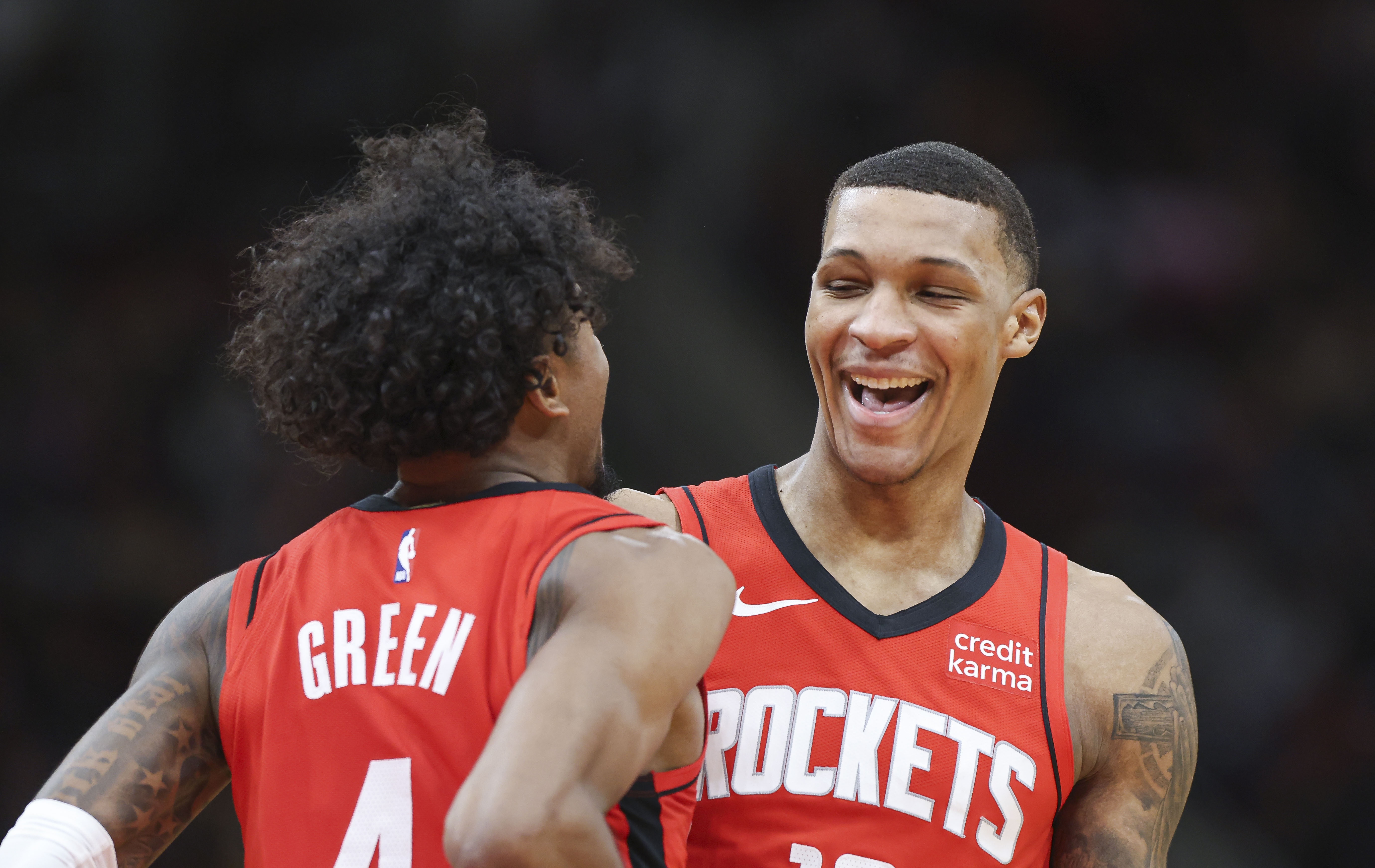 3月28日訊 火箭今日客場經歷加時,132-126險勝雷霆,豪取10連勝。賽后,火箭球員小賈巴里接受媒體采訪時,談到了隊友杰倫-格林。