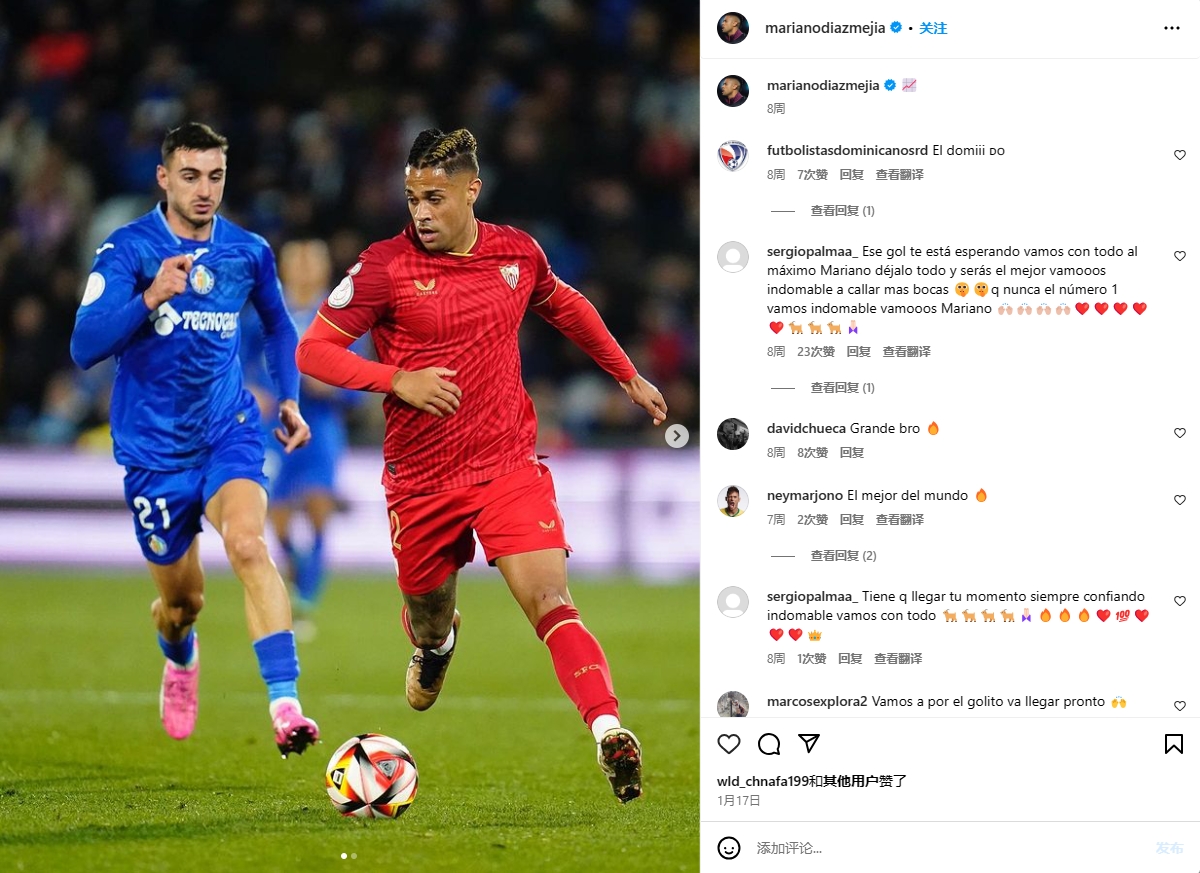 《阿斯報》表示,留給馬里亞諾的時間不多了,盡管球員合同到2025年夏天才結束,但是塞維利亞很有可能在這個夏天與他提前解約。因此,若馬里亞諾想繼續留隊,他必須利用僅有的機會并拿出好的表現,以說服主教練弗洛雷斯。本賽季至今,馬里亞諾代表塞維利亞出戰共10場,其中8次替補登場,沒有收獲進球或助攻。