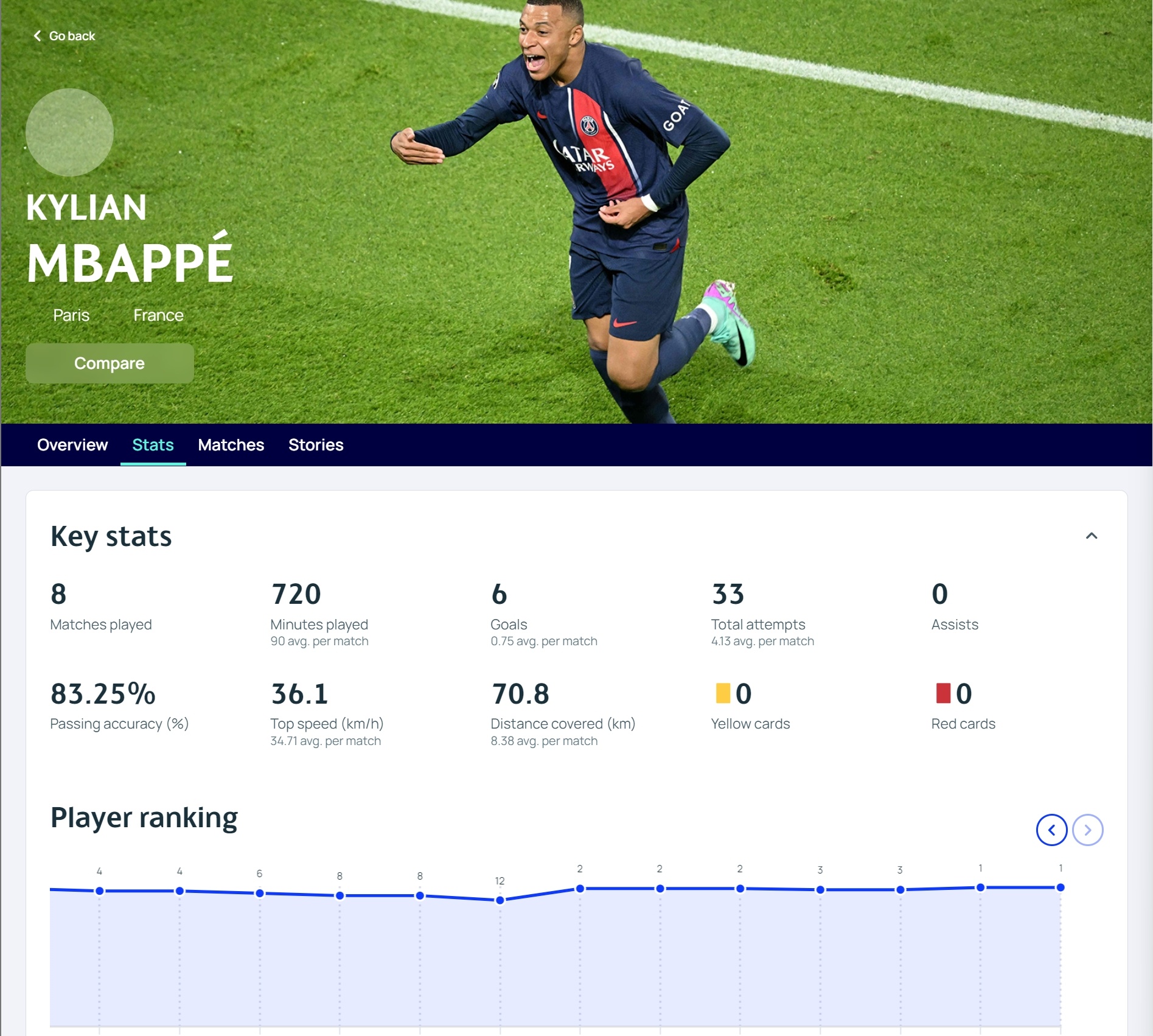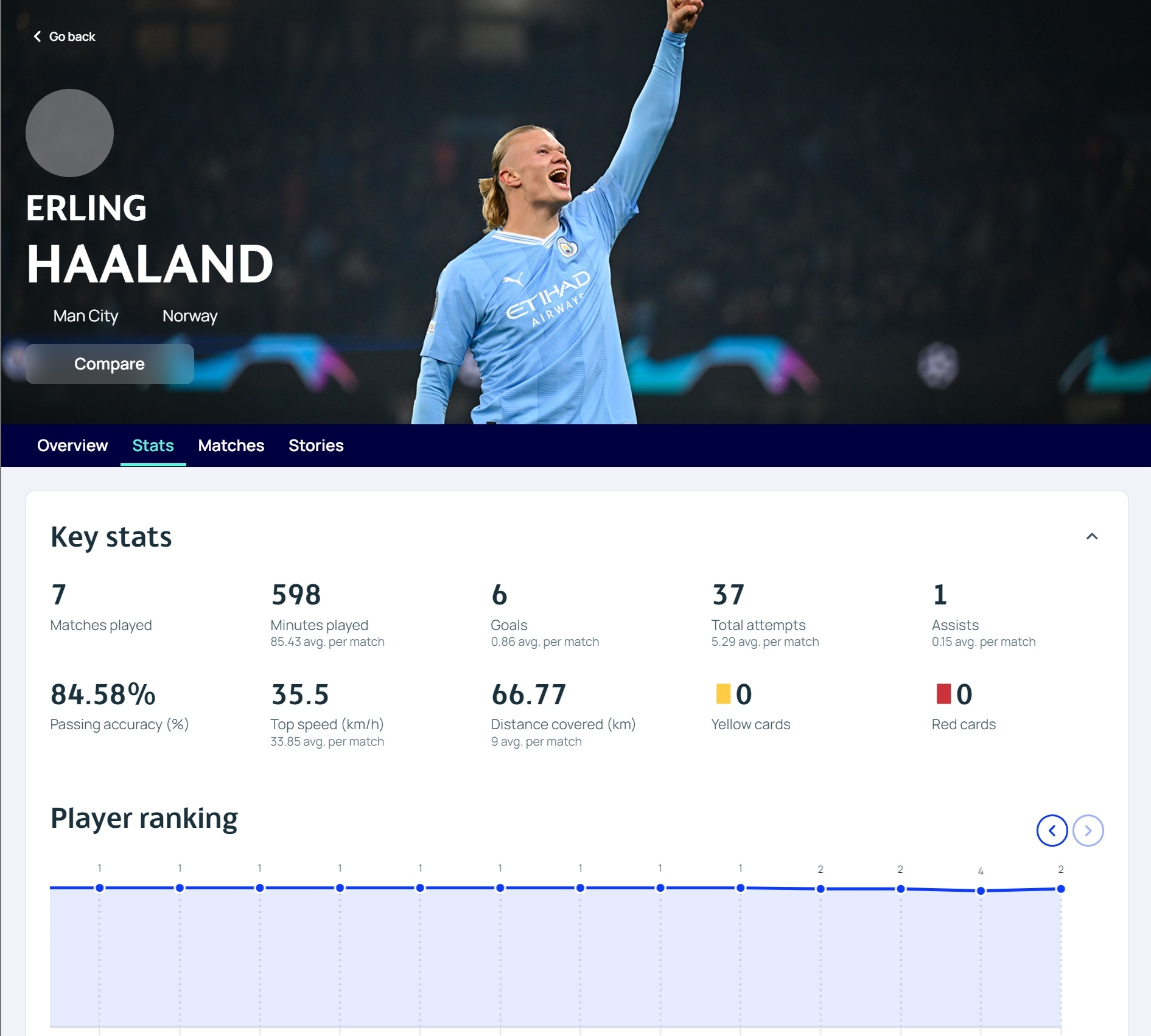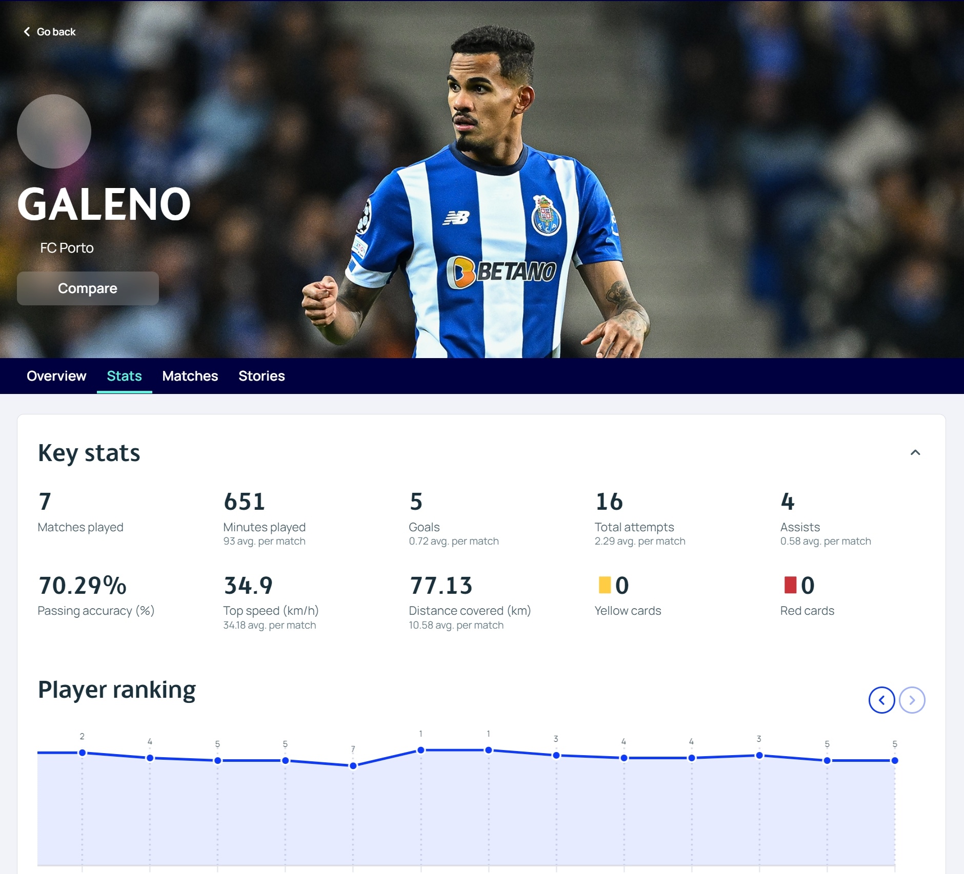 歐冠官方從21/22賽季開始推出一項全新評分:球員表現分。該項評分將會把球員比賽時的各項數據輸入到設計的算法中,根據表現來累計積分進行排名,并在每個比賽日更新,作為球員單賽季歐冠整體表現的衡量標準之一。
