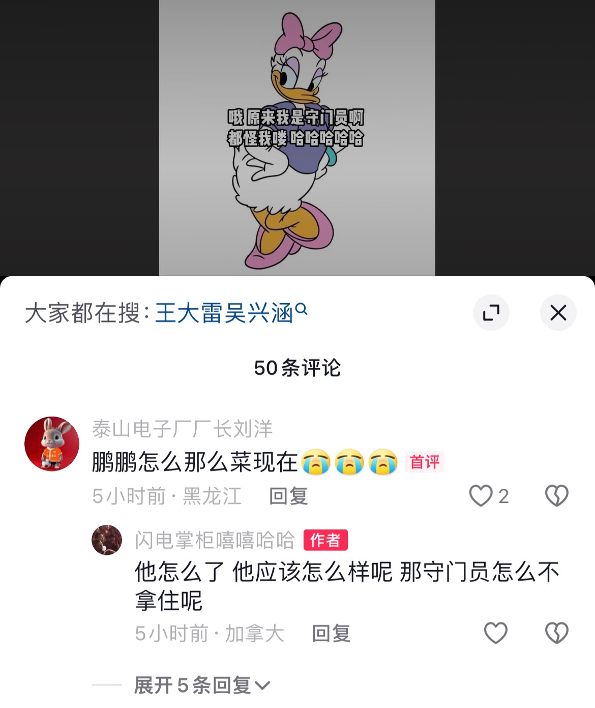 吳興涵妻子社媒曬圖:“哦,原來我是守門員啊,都怪我咯,哈哈哈哈哈。”球迷評論:“鵬鵬怎么那么菜現在。”吳興涵妻子則回復:“他怎么了,他應該怎么樣呢,那守門員怎么不拿住呢?”