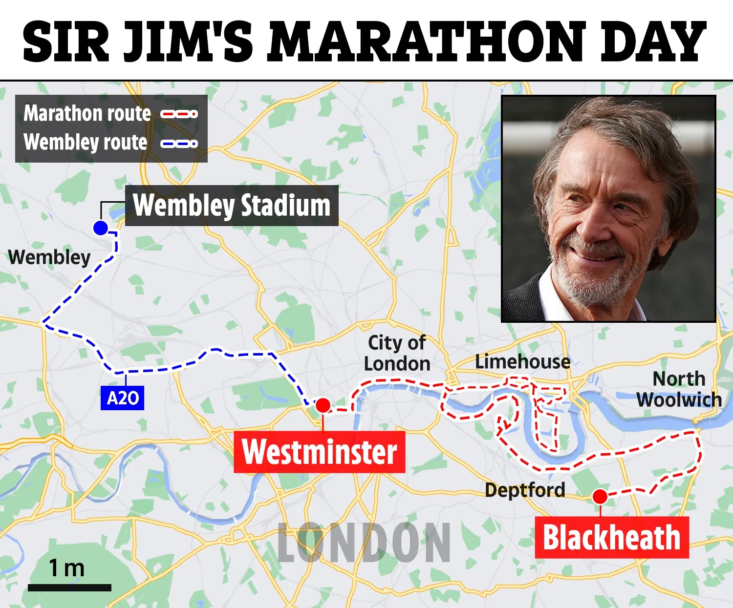 根據此前太陽報的報道,倫敦馬拉松的起點在東倫敦的格林威治,路線蜿蜒穿過倫敦,到達位于威斯敏斯特的終點。從終點到溫布利,不論是駕車還是公共交通,都需要至少1小時的車程。因此拉特克利夫計劃到場觀戰下半場。