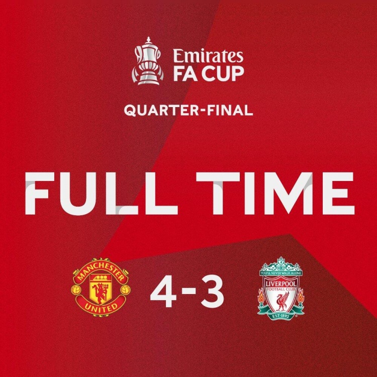 足總杯1/4決賽,利物浦3-4曼聯(lián)