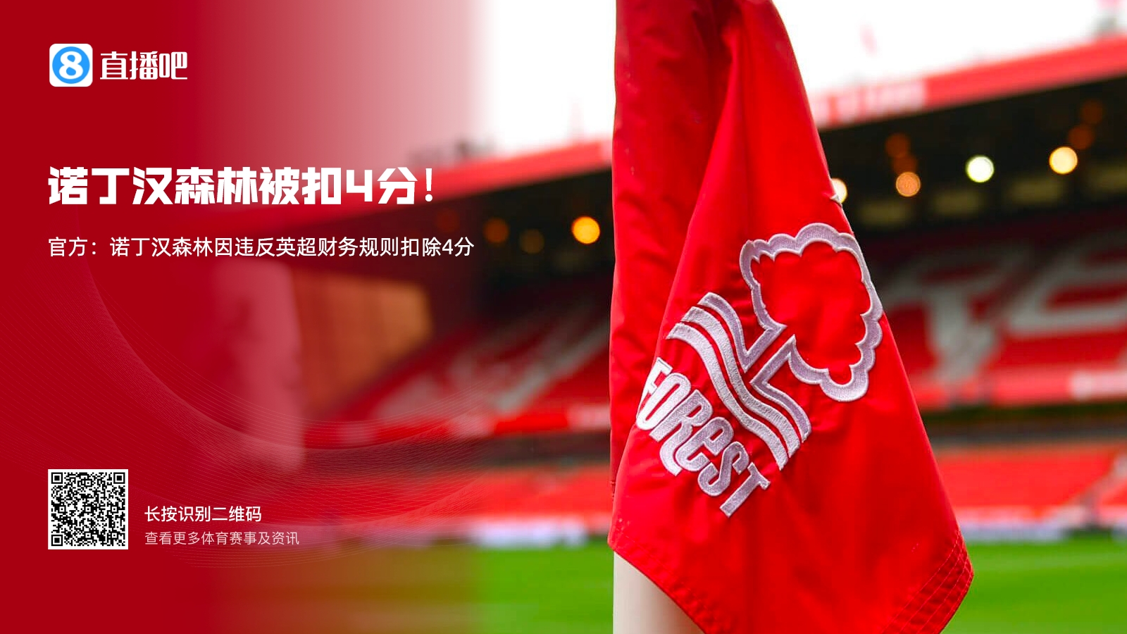 【相關(guān)新聞】跌入降級區(qū)!官方:諾丁漢森林因違反英超財務(wù)規(guī)則扣除4分