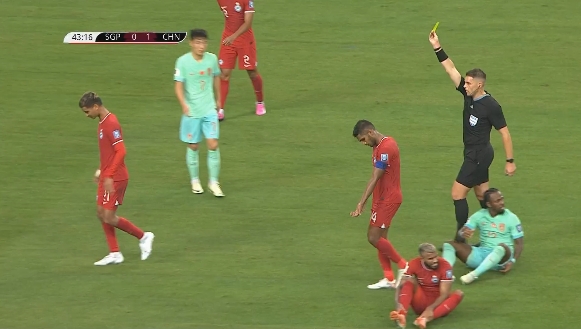 3月21日訊 世預賽第3輪,中國男足客場對陣新加坡。上半場第44分鐘,費南多突破遭對手強力飛鏟,裁判出示黃牌。