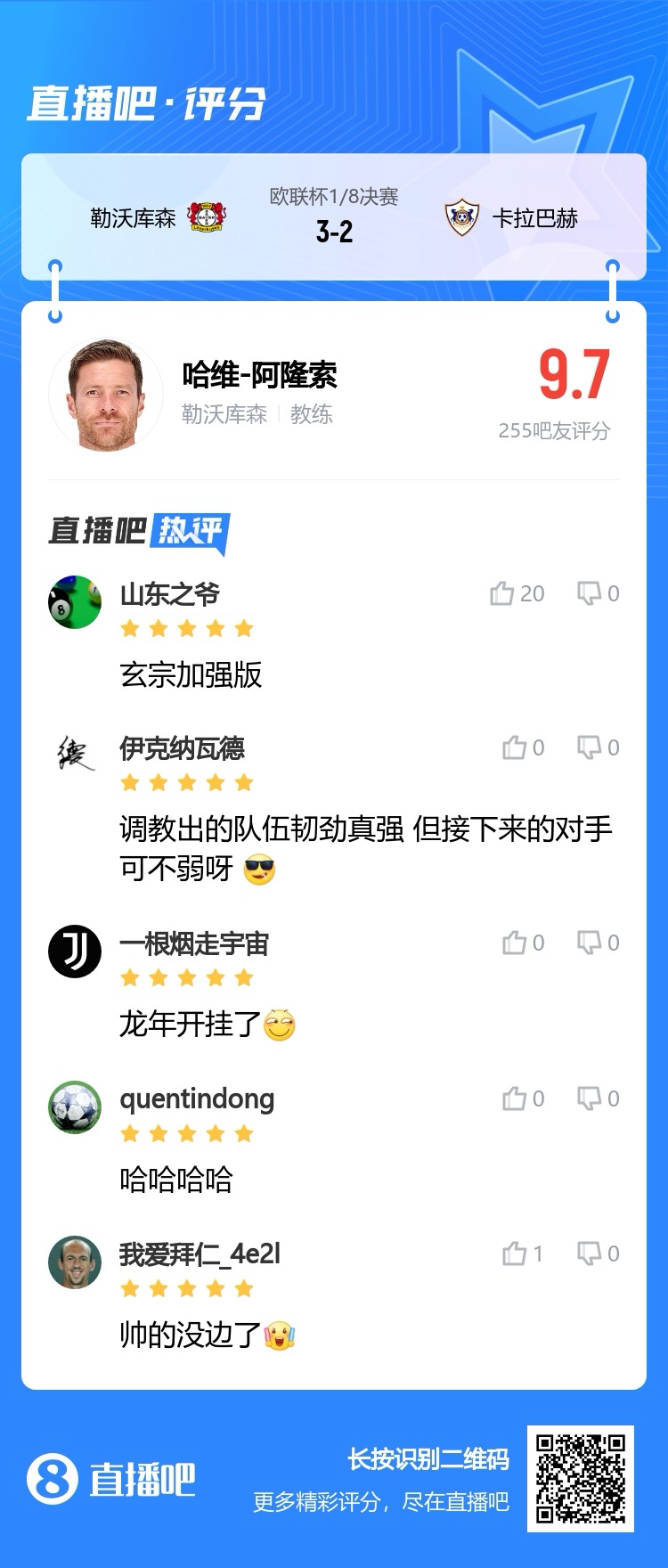 賽后吧友給阿隆索打出9.7分,點評:玄宗加強版,龍年開掛了