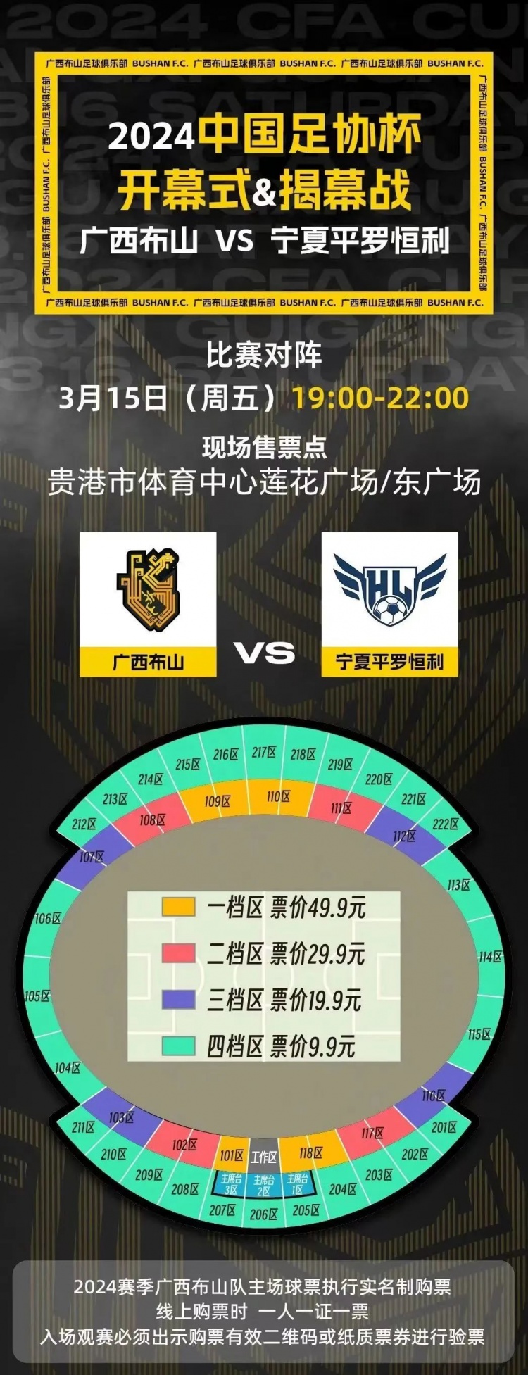3月15日晚19:00,2024中國足協杯開幕式暨揭幕賽將在貴港市體育中心舉辦,揭幕戰將由廣西布山對陣寧夏平羅恒利。