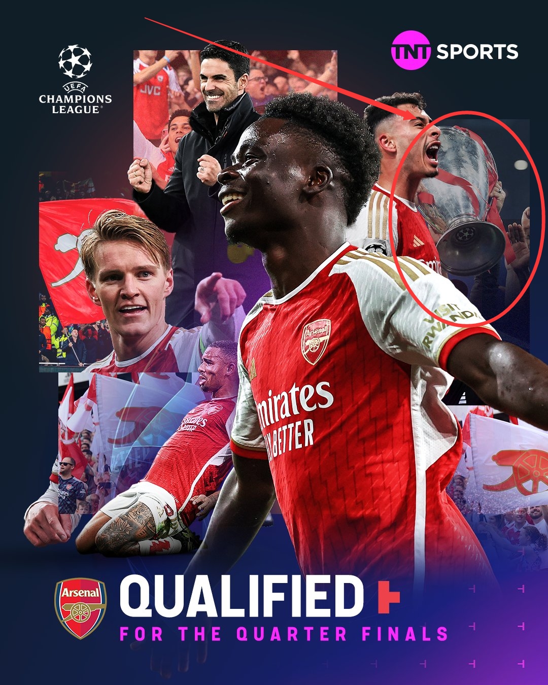 TNT Sports制作的阿森納晉級歐冠8強海報