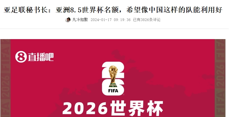 我們希望像中國隊這樣的球隊能夠利用好這8.5或9個給亞洲的名額。