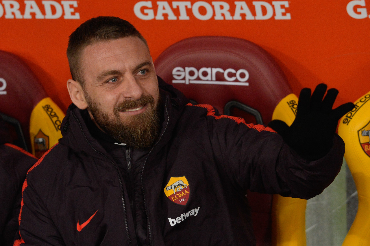 本周羅馬傳奇托蒂在回答球迷提問(wèn)時(shí)戲稱(chēng)自己愿回羅馬任職,對(duì)此德羅西笑著回應(yīng)稱(chēng):“我們今晚就會(huì)回羅馬機(jī)場(chǎng),到時(shí)候我會(huì)打電話給他,看看他怎么說(shuō)……”