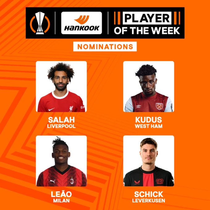 3月15日訊 歐聯杯1/8決賽次回合比賽戰罷,歐聯杯公布了本周最佳球員的候選名單,薩拉赫、萊奧在列。
