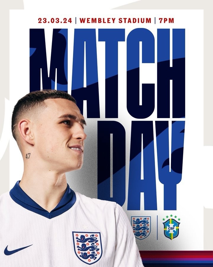 英格蘭隊在推特上寫道:“我們非常的期待這場比賽。”在海報中,福登身著英格蘭隊的全新戰袍出鏡。