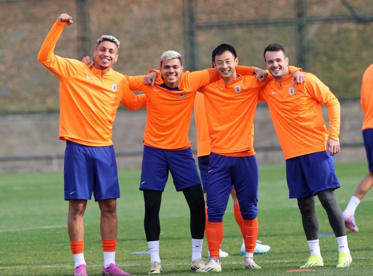 本周中超聯賽將重燃戰火,山東泰山隊主場對陣上海申花隊。3月26日,山東泰山隊在基地內進行一天兩練,除了國字號球員之外,其余隊員在教練組安排下進行積極訓練,全力備戰本周日與上海申花比賽。 ???