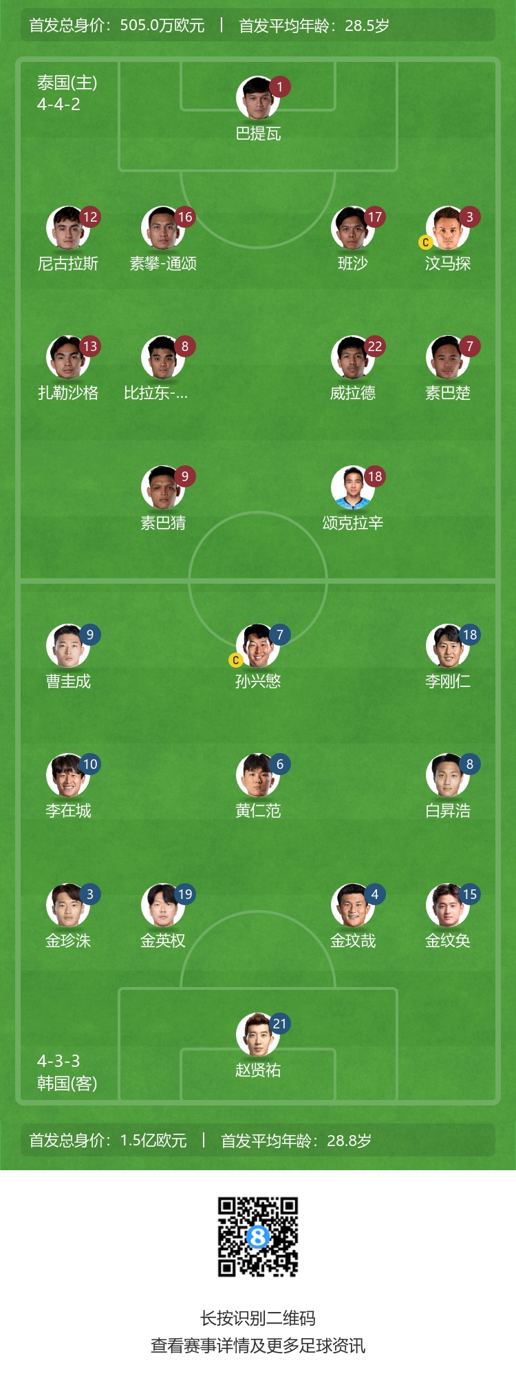 3月26日訊 北京時間20:30,世亞預第二階段第四輪,泰國主場迎戰韓國,賽前雙方公布首發陣容。