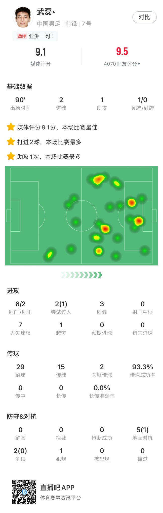 武磊全場數(shù)據(jù)如下↓↓↓