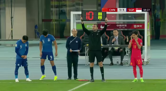 03月26日訊 世預賽亞洲區C組第4輪,國足主場對陣新加坡。比賽第59分鐘,韋世豪替補登場,換下謝鵬飛。