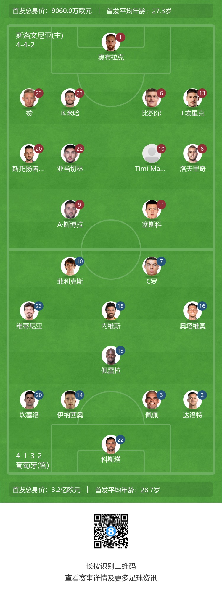 3月27日訊 友誼賽對(duì)陣,斯洛文尼亞主場(chǎng)迎戰(zhàn)葡萄牙比賽即將打響。賽前首發(fā)出爐。
